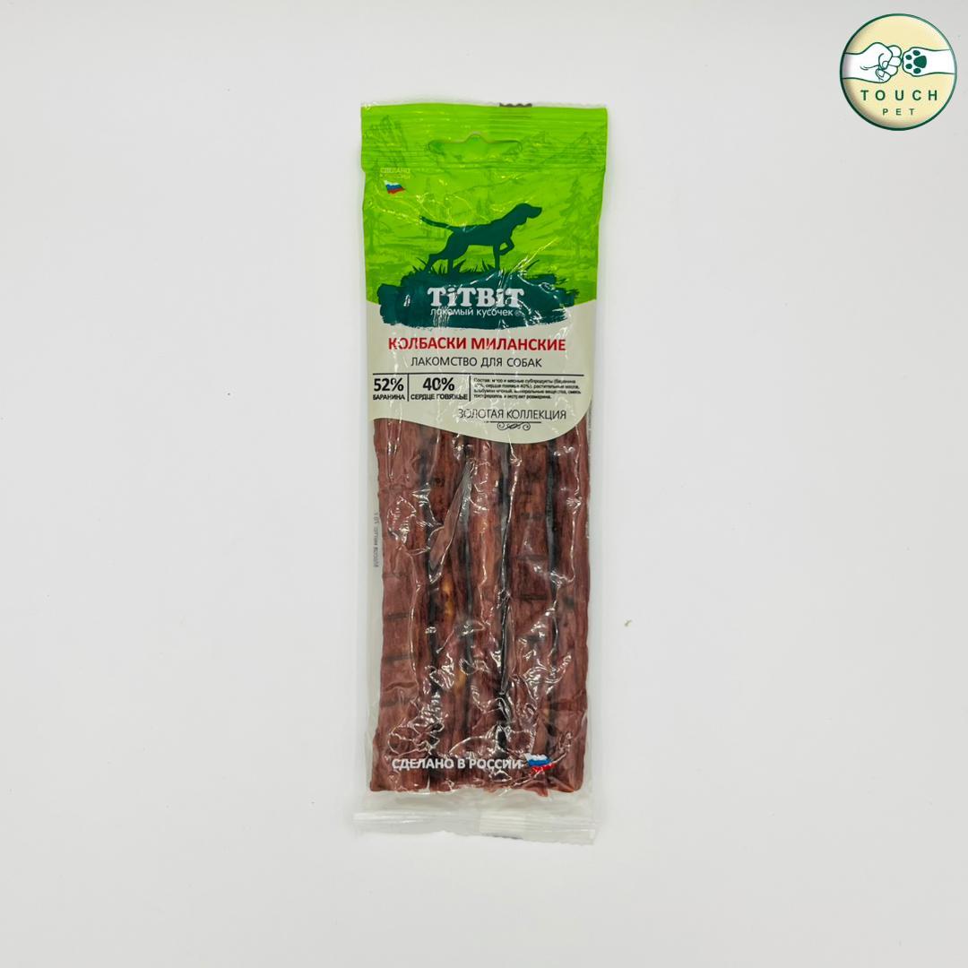 سوسیس باواریایی تیت بیت مخصوص سگها، مجموعه طلایی، ۳۵ گرمTitBit Bavarian Sausage for Dogs, Golden Collectionسوسیس باواریایی تیت بیت از مجموعه طلایی این برند، یکی از باکیفیتترین تشویقیهای گوشتی مخصوص سگهاست که با طعمی اصیل و عطر دلانگیز، هر سگی را شیفته خود میکند. این محصول از گوشت تازه گاو و مرغ تهیه شده و با روشی ویژه خشک میشود تا مواد مغذی آن حفظ گردد. بافت نرم و معطر این سوسیس باعث میشود برای تمامی نژادهای سگ، حتی سگهای مسن یا دندانحساس، کاملاً مناسب باشد.