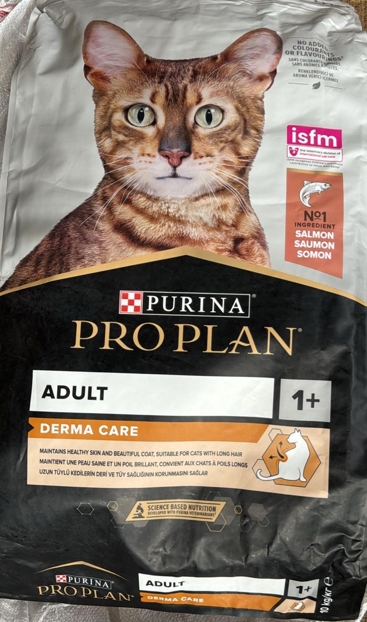 غذای خشک گربه بالغ بد غذا پروپلن با طعم ماهی سالمون Proplan Adult Derma Care وزن 3 کیلوگرم- غذای کامل برای گربه های بالغ
