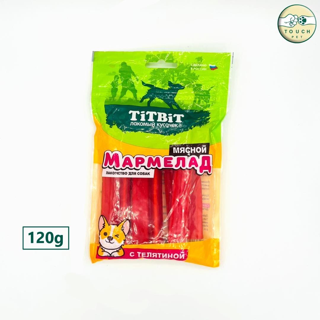 مارمالاد گوشت سگ تیت بیت با گوشت گوساله ۱۲۰ گرمTIT BIT Meat Marmalade for Dogs – Beef Flavorمارمالاد گوشت سگ TIT BIT با طعم گوشت گوساله یک میانوعده خاص و لذیذ برای سگهاست که بافتی نرم و قابل جویدن دارد. این محصول با گوشت تازه و طبیعی گوساله تهیه شده و به روشی تولید میشود که ارزش غذایی مواد اولیه به طور کامل حفظ شود.