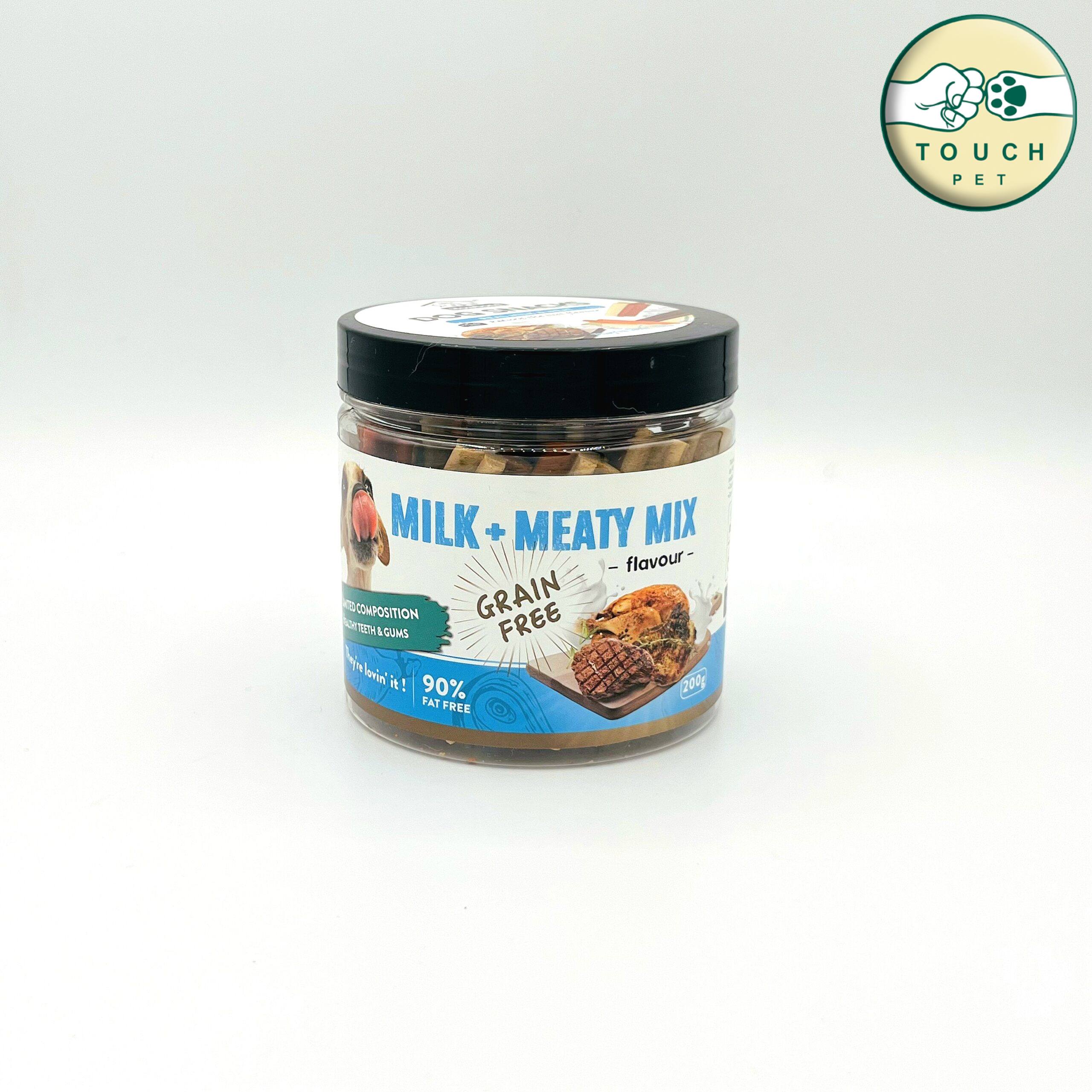 ✔ طعم خوشمزه و جذاب: ترکیب شیر و میکس گوشت برای رضایت کامل سگ شما