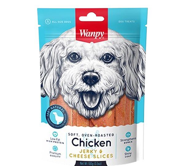 تشویقی سگ ونپی مدل Chicken Jerky Cheese Slices به عنوان یک میان وعده عالی برای سگ ها توسط دامپزشکان پیشنهاد می شود.