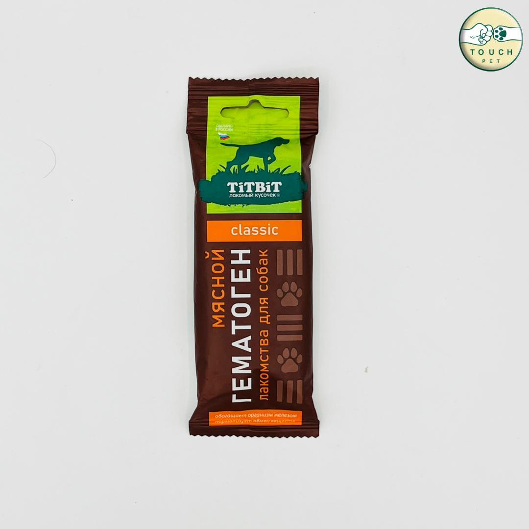 تشویقی هماتوژن گوشت کلاسیک سگ تیت بیت TIT BIT Meat Hematogen Classic for DogsTIT BIT Meat Hematogen Classic یک مکمل غذایی کلاسیک برای سگهاست که ترکیبی از گوشت طبیعی، آهن، ویتامینها و مواد معدنی دارد. این محصول انرژیبخش بوده و به تقویت سیستم ایمنی، افزایش استقامت و بهبود وضعیت پوست و مو کمک میکند.