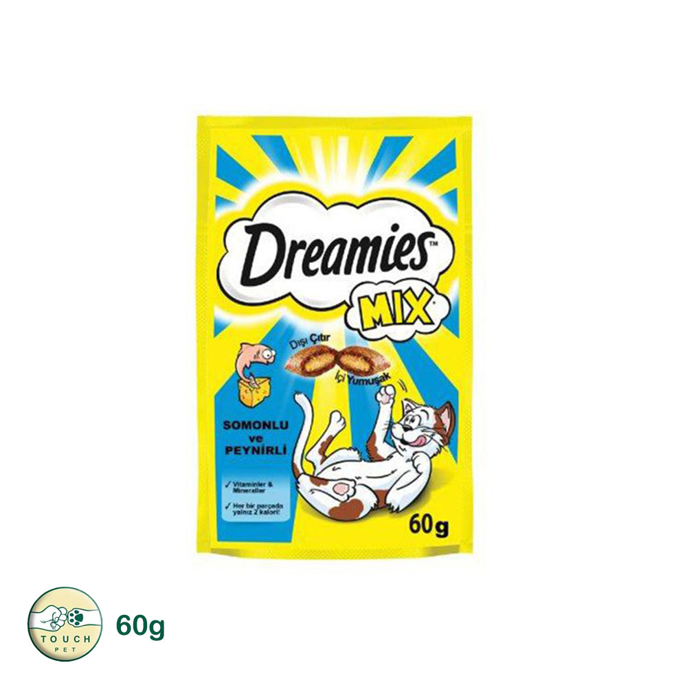 تشویقی گربه دریمیز طعم ترکیبی سالمون و پنیر 60 گرمی Dreamies Cat Snack with salmon and cheese