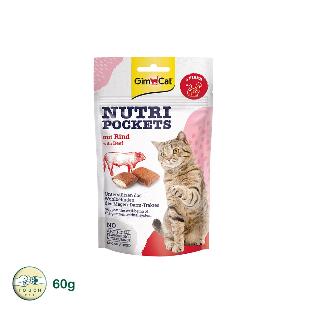 تشویقی گربه نوتری پاکت جیم کت با طعم گوشت گاو Gimcat Nutri Pockets Treat With Beef & Malt 60gگربههای بالغ (۸ ماه به بالا)