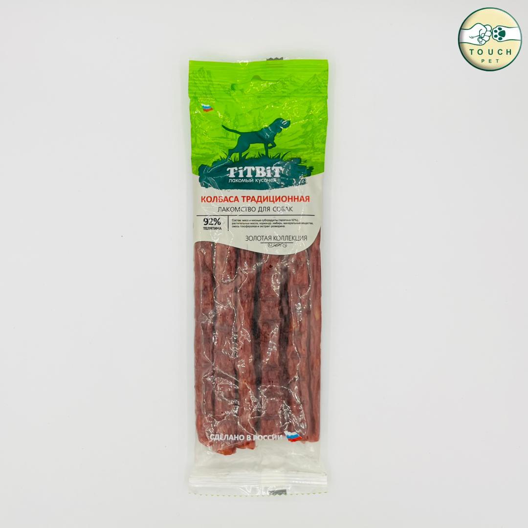 سوسیس سنتی تیت بیت مخصوص سگها، مجموعه طلایی، 80 گرمTIT BIT Traditional Sausage for Dogsسوسیس سنتی سگ TIT BIT Golden Collection یکی از محصولات پرطرفدار و باکیفیت این برند روسی است که مخصوص سگهای علاقهمند به طعمهای گوشتی طراحی شده است. این محصول از ترکیب گوشت طبیعی، چربی کنترلشده و پروتئین بالا تهیه شده تا علاوه بر طعم عالی، انرژی لازم برای فعالیت روزانه سگ را تأمین کند.
