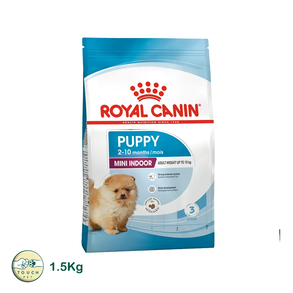 غذای خشک توله سگ رویال کنین مدل Mini Indoor Puppy وزن 1.5 کیلوگرم- 🐶 ویژه توله سگهای داخل منزل نژاد کوچک با سن ۲ تا ۱۰ ماه 🏡