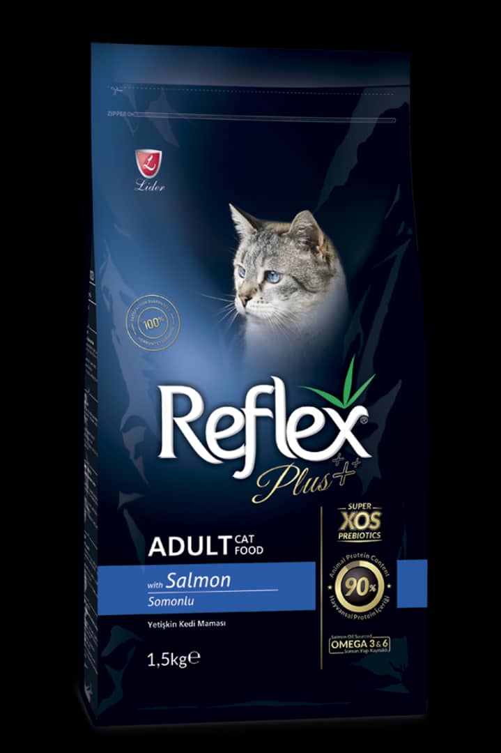غذای خشک رفلکس پلاس بالغ طعم سالمون ۱.۵کیلو Reflex Plus Adult Cat Food Salmon Flavorغذای خشک رفلکس پلاس با طعم سالمون برای گربههای بالغ، یک انتخاب ایدهآل برای کسانی است که به دنبال غذایی خوشطعم، مغذی و مناسب برای سلامت کلی گربه خانگیشان هستند. سالمون یکی از منابع غنی پروتئین حیوانی با کیفیت بالا و اسیدهای چرب امگا ۳ است که نهتنها برای عضلهسازی مفید است، بلکه نقش مهمی در تقویت پوست و درخشندگی موی گربهها دارد.