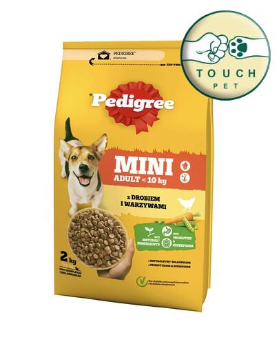 غذاهای خشک PEDIGREE Adult Mini با مرغ و سبزیجات، تغذیهای کامل برای سگهای نژاد کوچک با وزن کمتر از ۱۰ کیلوگرم هستند.