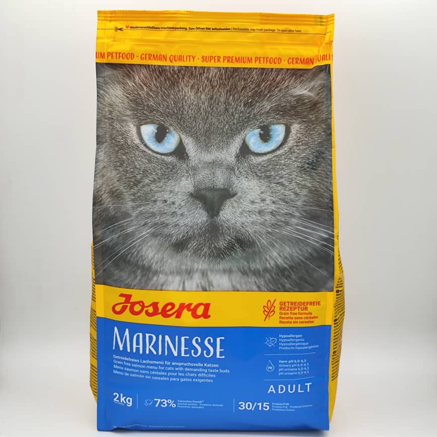 غذای خشک گربه جوسرا مدل مارینس بدون غلات طعم ماهی وزن ۲ کیلو Josera Marines Grain-Free Cat Dry Food Fish Flavorغذای خشک گربه جوسرا مدل مارینس بدون غلات با طعم ماهی یکی از بهترین انتخابها برای صاحبان گربههایی است که به دنبال یک رژیم غذایی سالم و بدون غلات هستند. فرمولاسیون این محصول کاملاً متعادل طراحی شده و فاقد گلوتن و غلاتی است که میتواند باعث مشکلات گوارشی یا حساسیت غذایی در برخی گربهها شود.