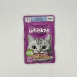 این پوچ از برند Whiskas یک غذای تر خوشطعم و مغذی برای گربههاست که با ترکیبی از ماهی تن و ماهی سالمون (آزاد) تهیه شده و داخل سس لذیذ سرو میشود. چون محصول روسیه است، کیفیت مواد اولیه و بافت نرم و آبدار آن بسیار مناسب گربههای بدغذا و حساس است.