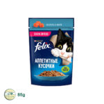 پوچ گربه بالغ فلیکس مدل Felix Appetizing pieces Tuna in Jelly با طعم ماهی تن در ژله وزن 85 گرم- برای عملکرد قلبی و بینایی