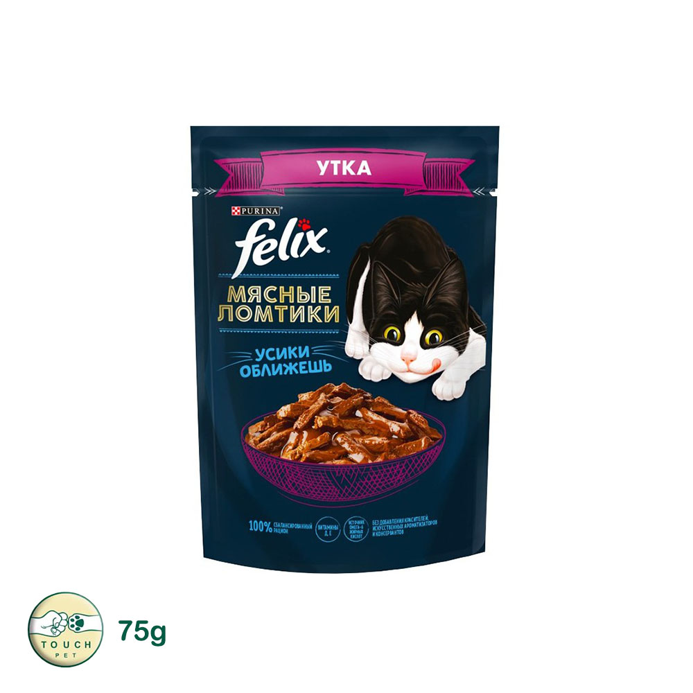 پوچ گربه بالغ فلیکس مدل Felix Meat Slices Duck in Sauce با طعم اردک در سس وزن 75 گرم- حاوی تائورین برای عملکرد قلبی و بینایی