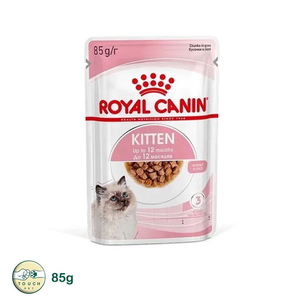 پوچ بچه گربه رویال کنین مدل Kitten in Sauce وزن 85 گرم- 🚀 رشد و مغز: پروتئین بالا و DHA برای توسعه کامل مغز و بینایی 🧠👁️