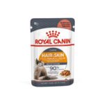 ROYAL CANIN® Hair & Skin Care in Gravy یک فرمول کامل و متعادل از نظر تغذیهای است که بهطور ویژه برای حمایت از سلامت پوست و موی گربه شما طراحی شده است.