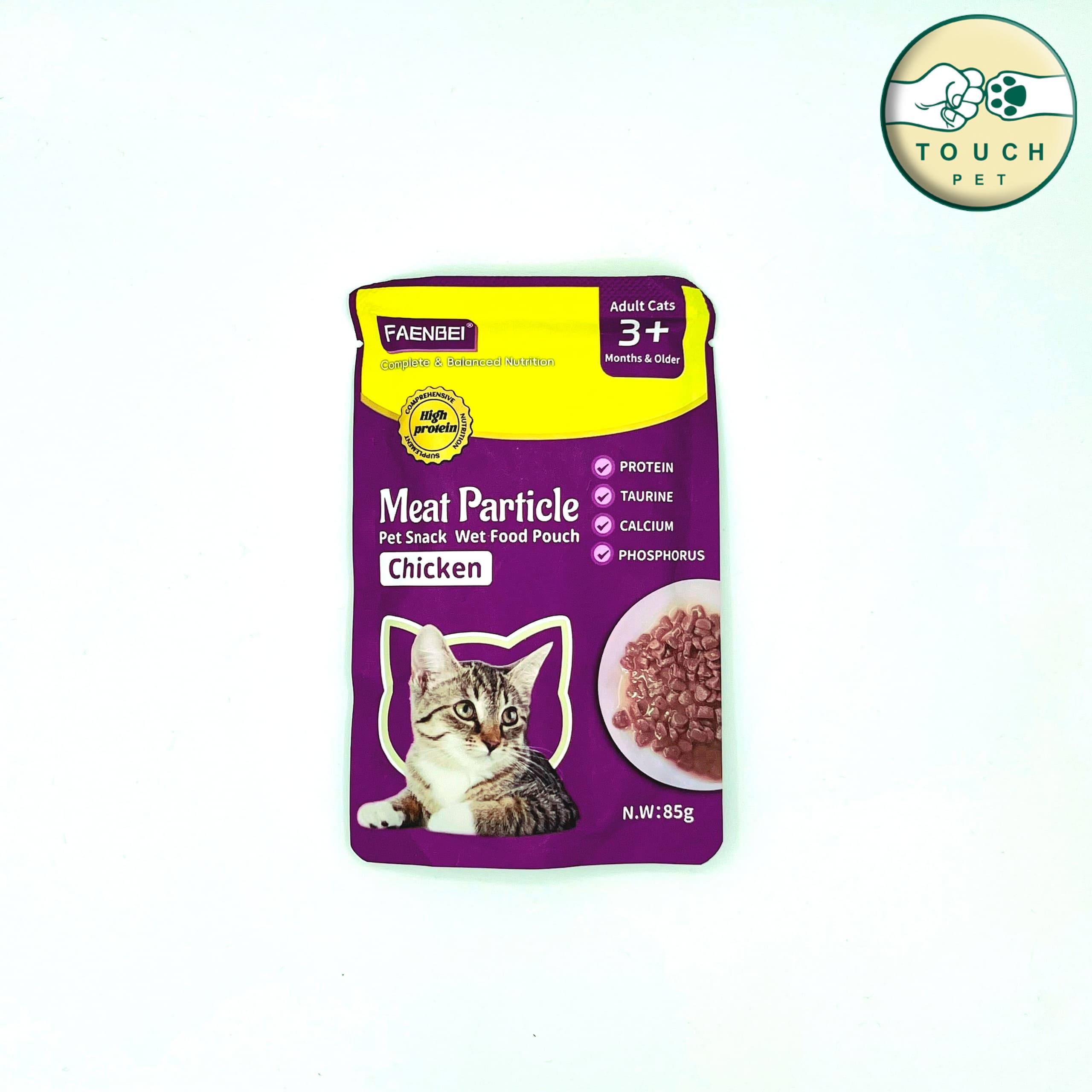 پوچ گربه فنبی با طعم مرغ 85 گرمیپوچ گربه فنبی با طعم مرغ FAENBEI مدل Meat Particle یک وعدهی کامل و متعادل برای گربههای بالغ بالای ۳ ماه است. این غذای پورهای بافت گوشتی دارد و با طعم دلپذیر مرغ، اشتهای گربه را تحریک میکند.