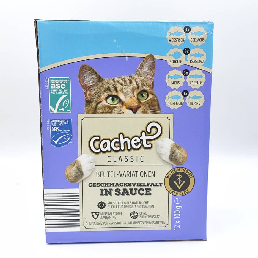 طعم میکس ماهی در این محصول از غذای مرطوب گربه Cachet، ترکیبی از انواع ماهیهای خوشخوراک مانند سالمون، ماهی سفید و تون ماهی است که برای گربهها فوقالعاده وسوسهانگیز است. ماهی منبعی غنی از پروتئین و اسیدهای چرب امگا ۳ است که به تقویت عملکرد مغز، بهبود کیفیت پوست و درخشندگی موی گربه کمک میکند.