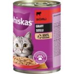 Whiskas Canned Cat Food With Beef یک غذای مرطوب و کامل برای گربههای بالغ است که با طعم خوشمزه گوشت گاو تهیه شده است.