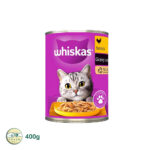 کنسرو گربه ویسکاس با طعم مرغ 400 گرم Whiskas Chicken Flavor Cat Canned Foodکنسرو گربه ویسکاس با طعم مرغ (Whiskas Chicken Flavor Cat Canned Food) از جمله محصولات پرطرفدار ویسکاس است که با طعمی محبوب و آشنا برای گربهها تولید شده است. گوشت مرغ منبع غنی پروتئین و مواد مغذی است که به تقویت عضلات و سلامت عمومی گربه کمک میکند.
