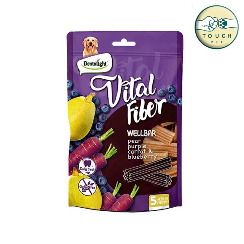 تشویقی سگ ویتال فیبر دنتالایت با طعم گلابی، هویج بنفش و بلوبری Dentalight Vital Fiber Wellbar بسته 5 عددی
