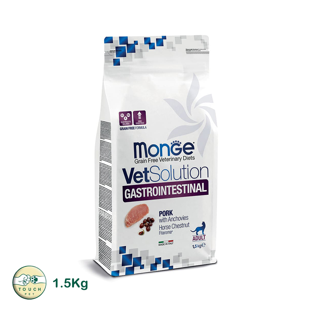 غذای خشک درمانی گربه مونژه حمایت از عملکرد گوارش مدل VetSolution Gastrointestinal Feline وزن 1.5 کیلوگرم- بازیابی سریع گوارش: حاوی پروتئین هیدرولیز شده (Hydrolyzed Protein) با قابلیت هضم بسیار بالا، ایدهآل برای مدیریت سوء جذب حاد و مزمن. 🔬