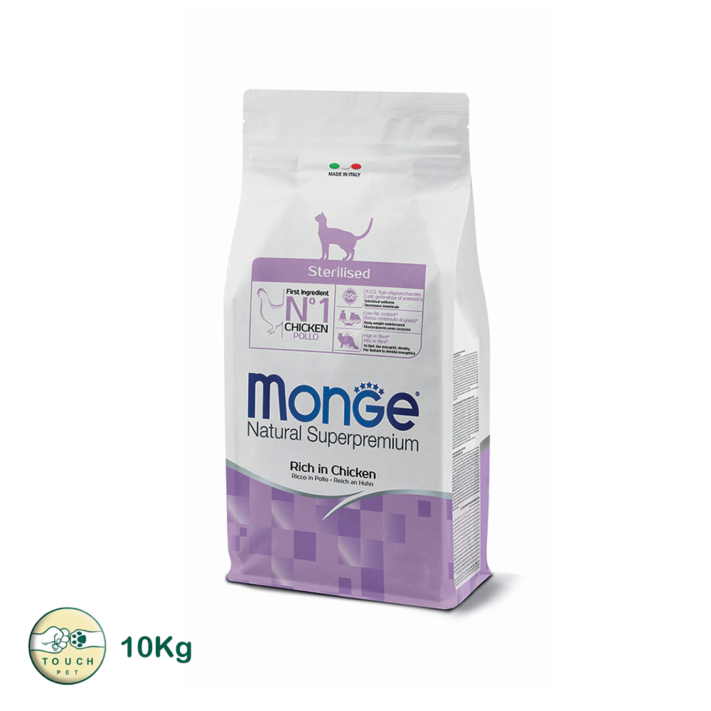غذای خشک گربهی بالغ عقیم شده مونژه Natural Superpremium Sterilised با طعم مرغ وزن 10 کیلوگرمکنترل وزن هوشمند: فرمولاسیون با چربی کاهشیافته و پروتئین تنظیمشده برای جلوگیری از اضافه وزن پس از عقیمسازی. ⚖️🍗